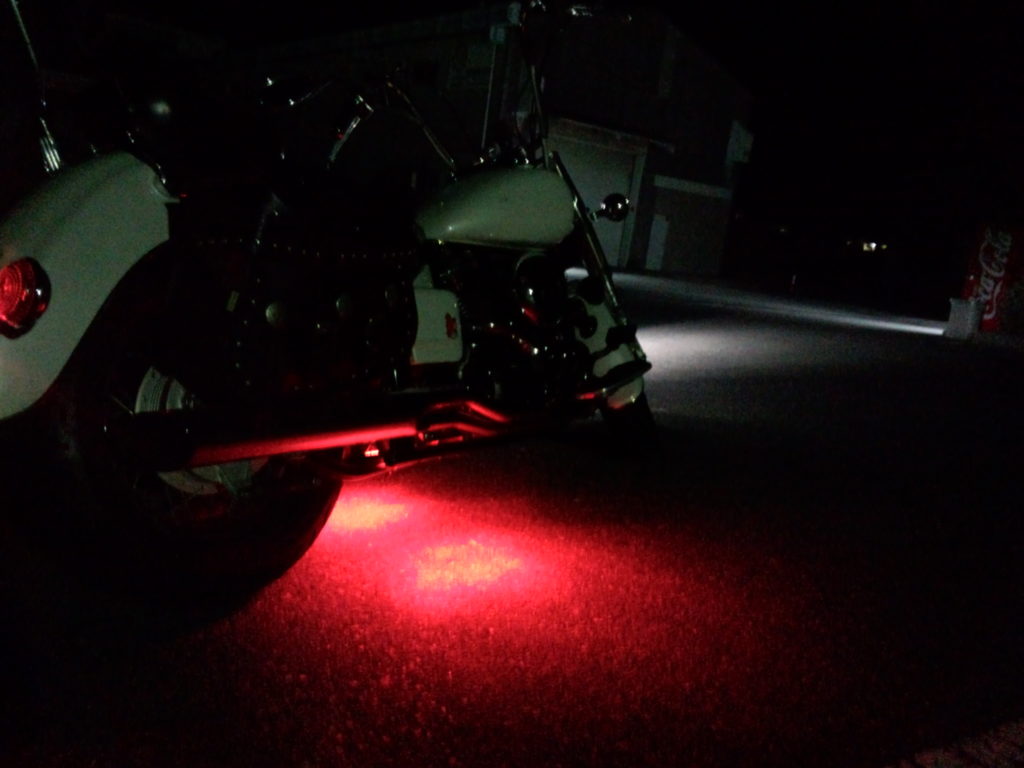 タンデムシート下に仕込んで間接的に照らす青色LED