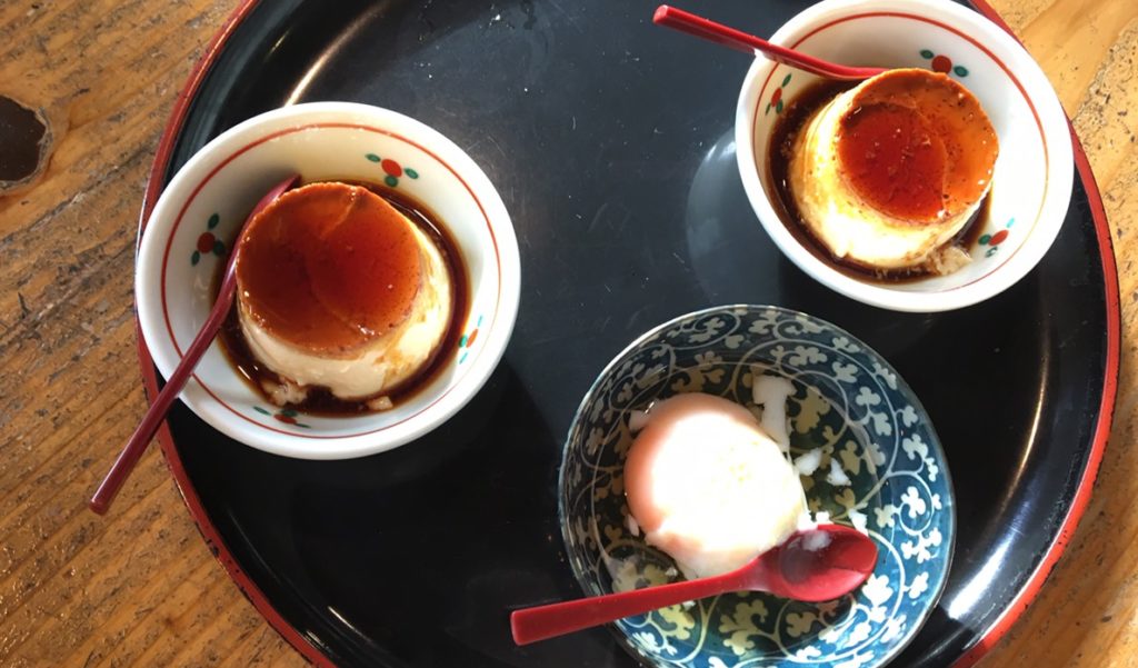 次に明礬温泉の岡本屋で地獄蒸しプリンを食す