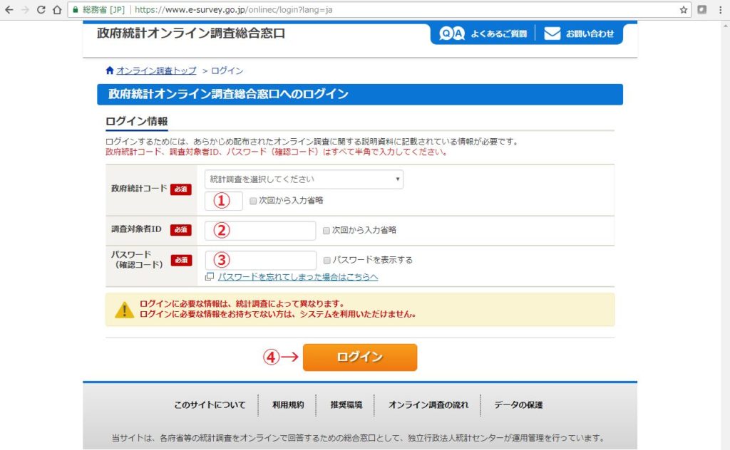- 3.1 ① 政府統計オンライン調査総合窓口にアクセスする。