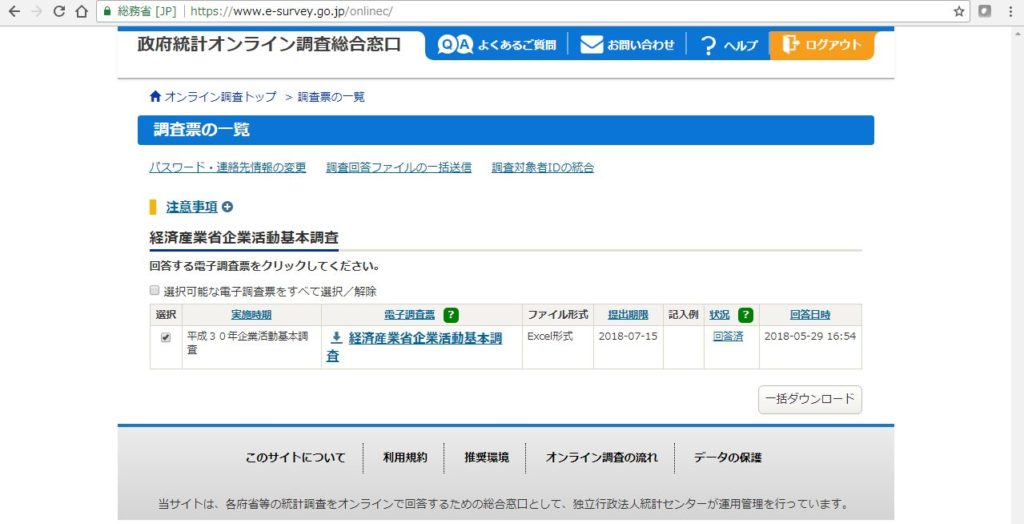 企業活動基本調査票の電子申請中に、気が付いたのですが