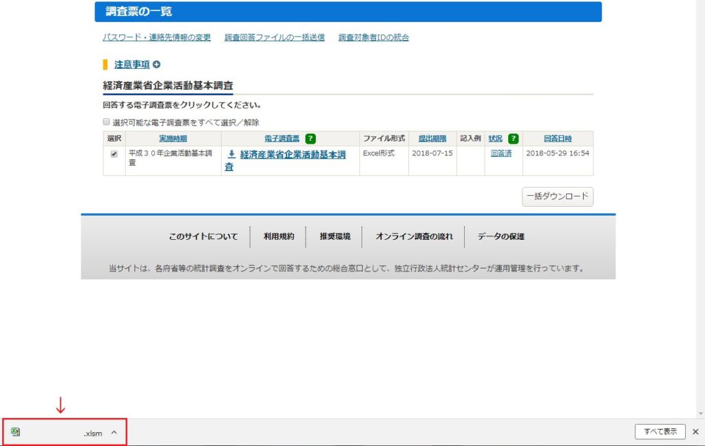 - 3.5 ⑤ OSによりかわりますが、画面下にダウンロードされたエクセルファイルをクリック