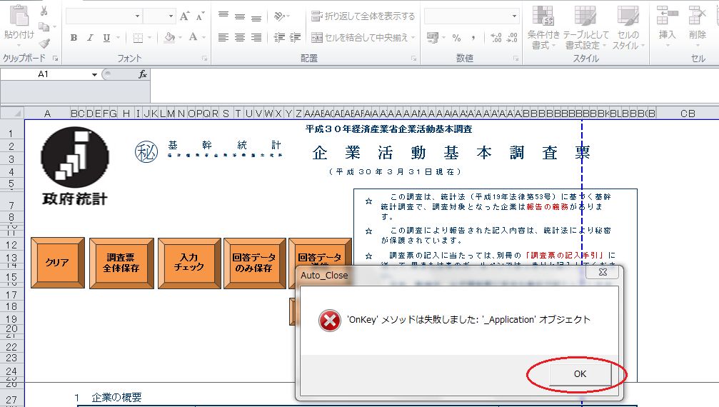 企業活動基本調査票のオンライン申請でマクロのエラーがでたときの対処方法
