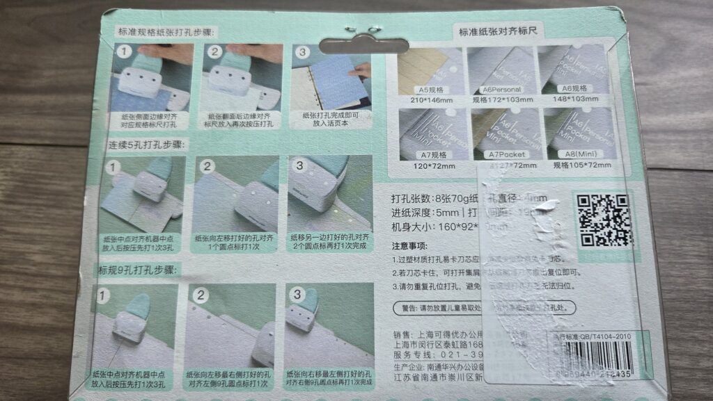 説明書には「打孔张数:8张70g纸」とあるので、「穴あけ可能枚数:70g紙で8枚まで」になる。
