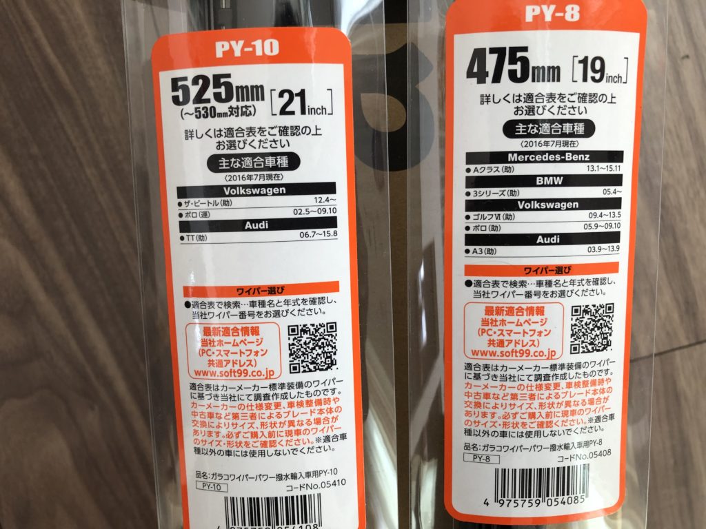 [blogcard url="http://www.glaco.jp/wiper/size/BMW/4103/7043"]型番は、助手席側がPY-8