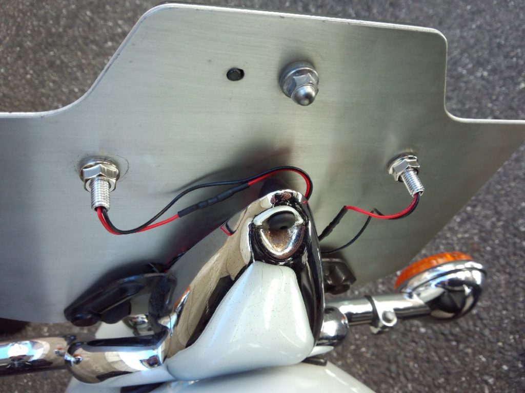 ブレーキランプの配線から分岐させて、ナンバーボルトの配線つなぐだけ。