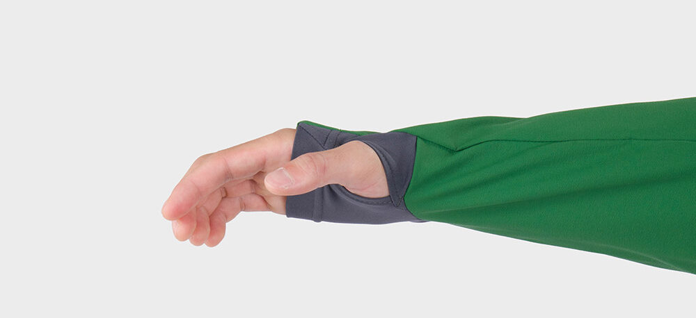 クラッグパーカにはサムホールがある。