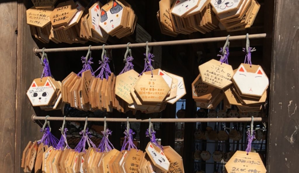 絵馬を見ていると、亡くなった愛猫に会いたい、あの世で幸せになってねと悼む声が多い。