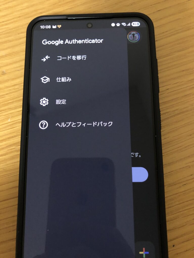 1:Google Authenticatorアプリの設定を開く
