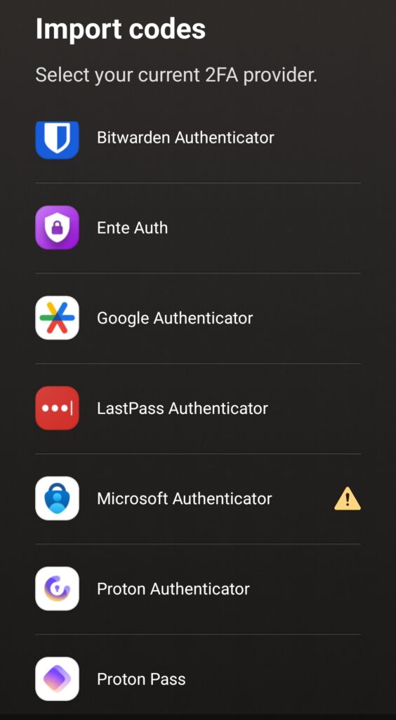 Proton Authenticatorへ切り替えできるもの